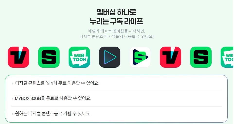 | 가입방법 | 인터넷 | 전화, IPTV, 케이블 TV등등 |