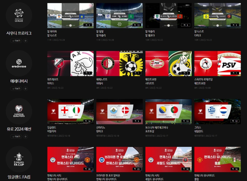 그리고 멤버십이 있다면 스포티에서 1달간 무료로 중계 시청을 할 수 있습니다. 하이라이트 영상은 주기적으로 업데이트되고 있고, 축구뿐만이 아니라 야구, 농구, 배드민턴, 골프도 즐길 수 있습니다.