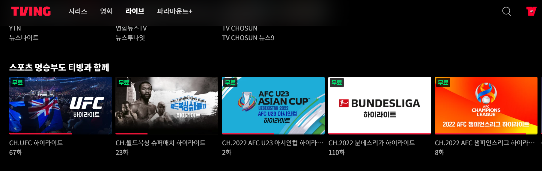 무료 스포츠 중계 라이브 보기