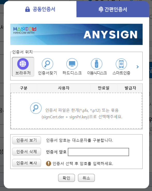 STEP2. 공동인증서나 간편인증서로 로그인이 가능합니다. 공동인증서는 은행에서 발급해주는 공인인증서의 새로운 버전이라고 보시면 되고, 간편인증서는 네이버, 토스, 카카오, 통신사 그리고 PAYCO가 있습니다. 저는 주로 네이버인증서나 카카오톡을 이용하는데, 이번에는 네이버 인증서로 들어가보았습니다.